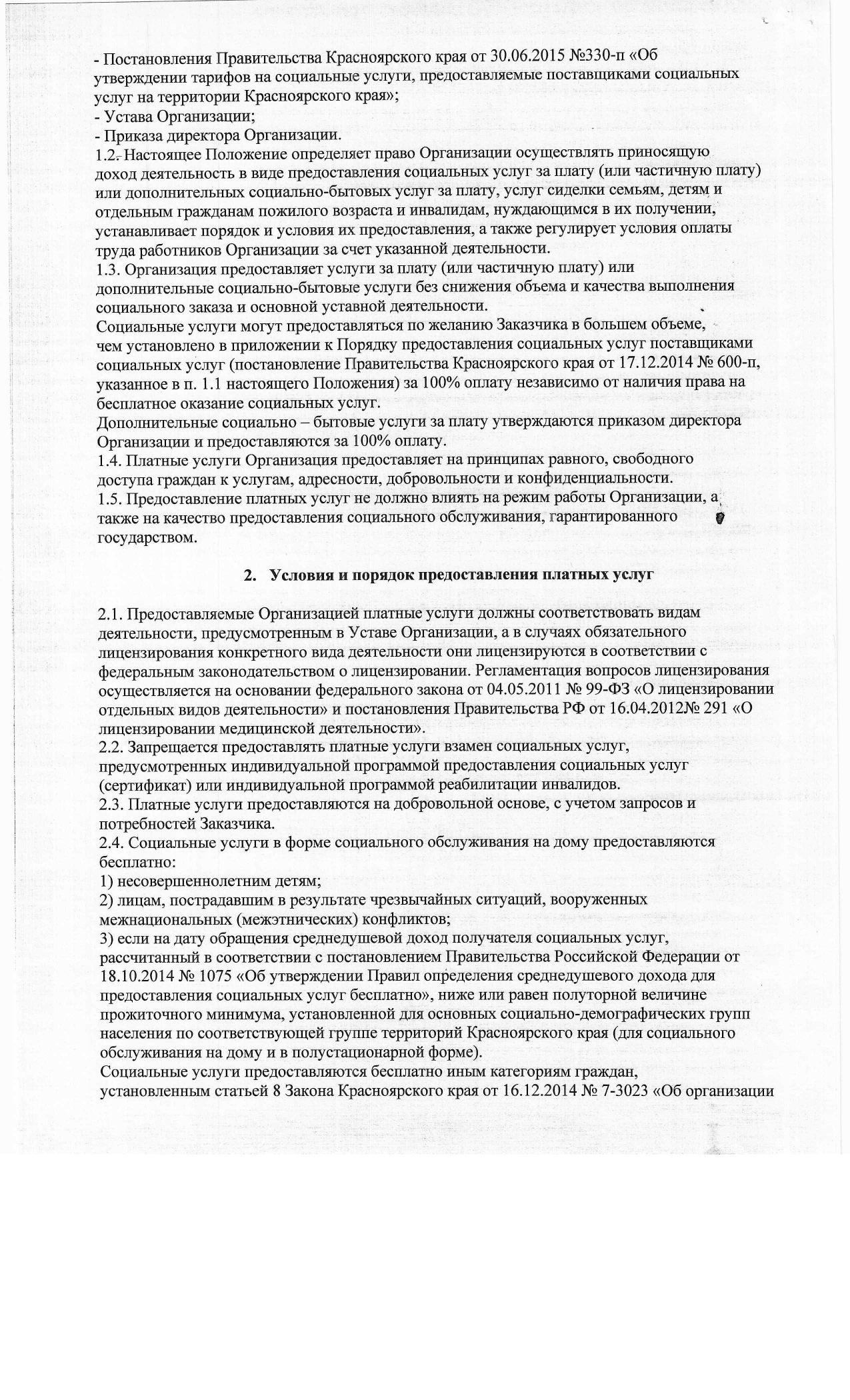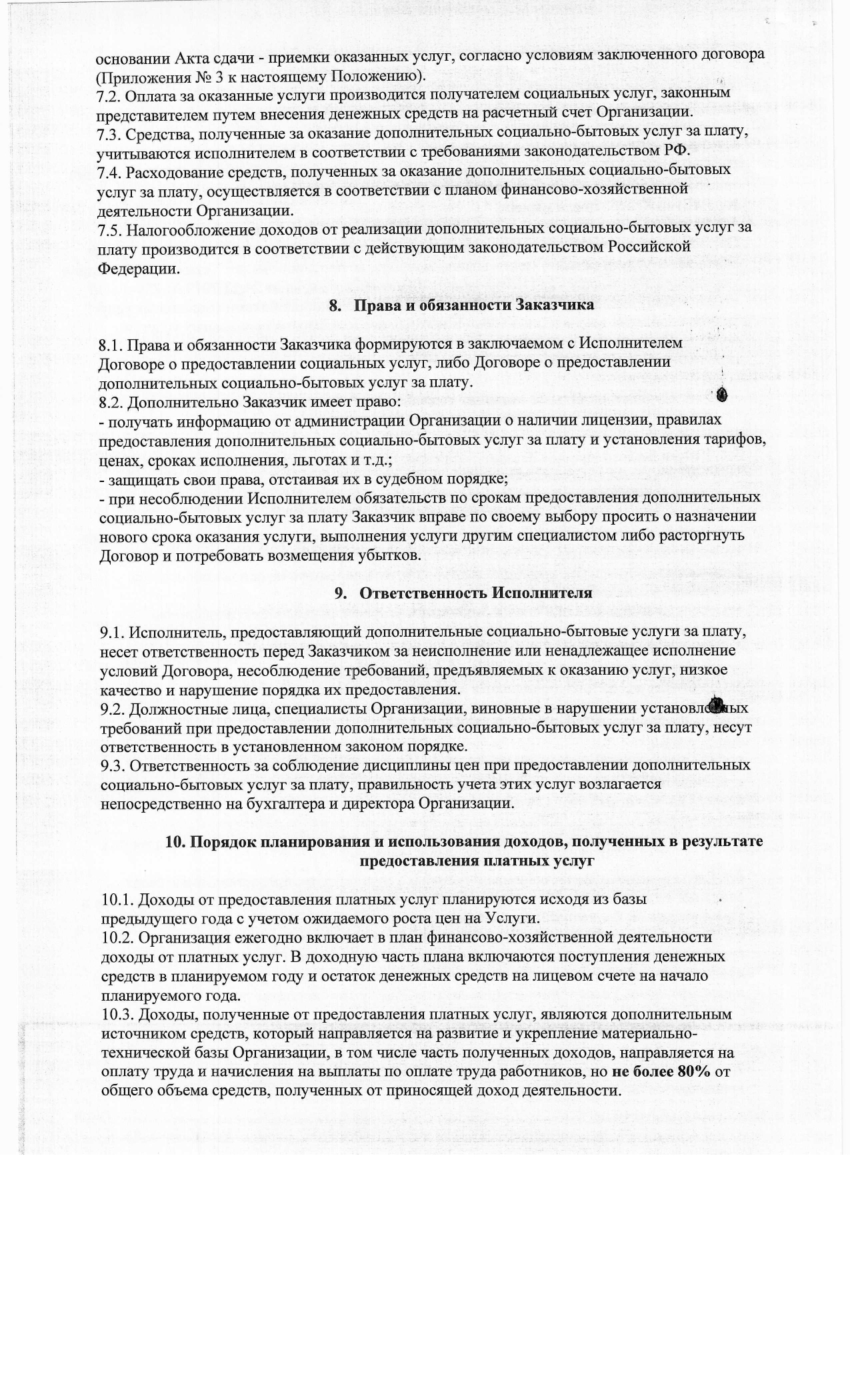 Положение о предоставлении платных услуг