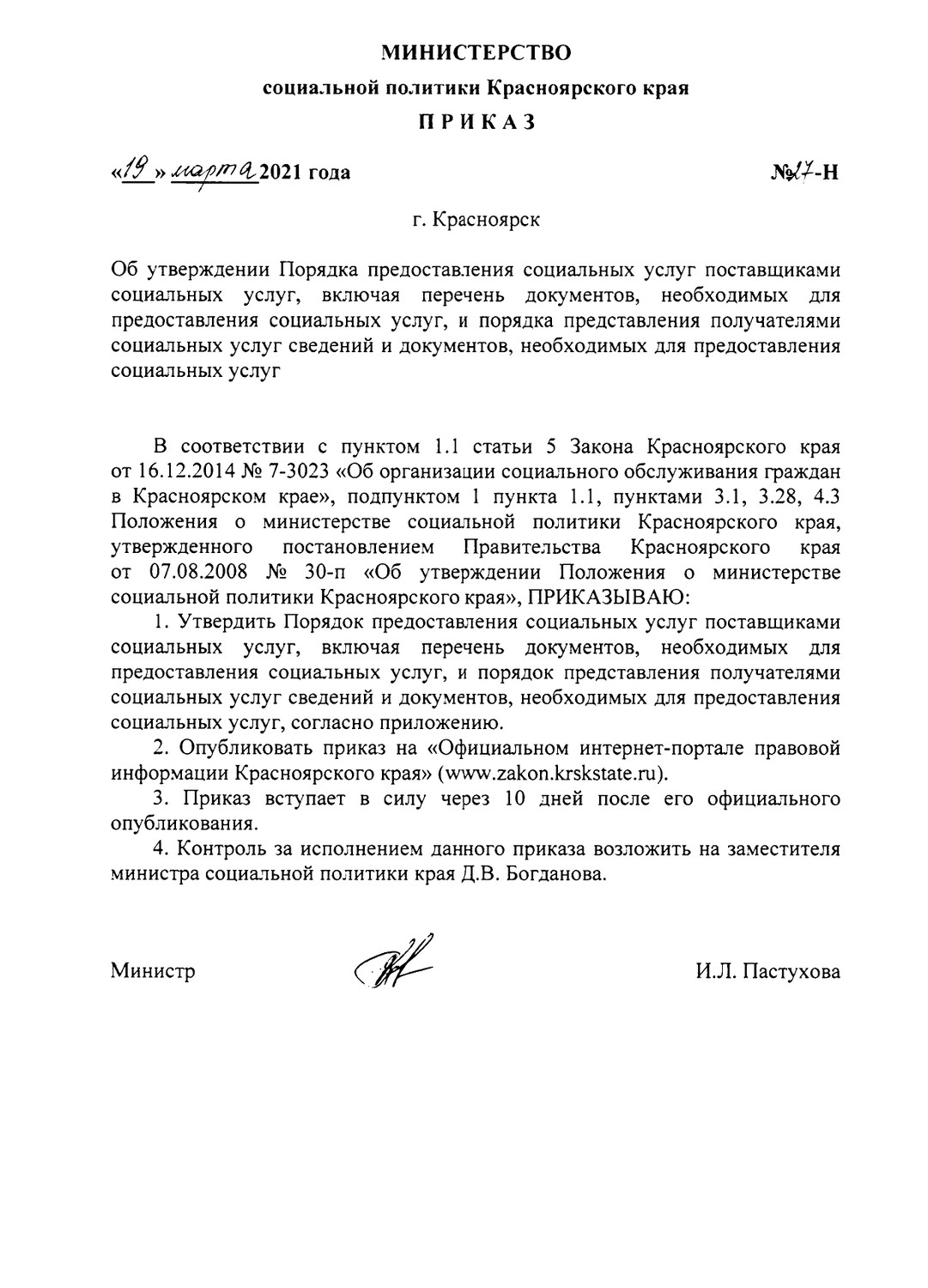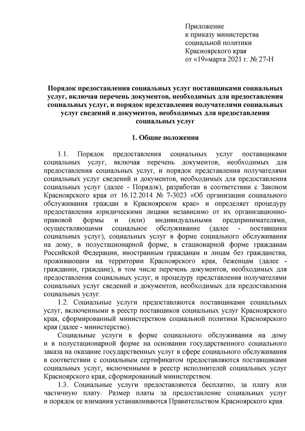 Приказ Министерства соц.политики Красноярского края от 19.03.2021 г. № 27-н